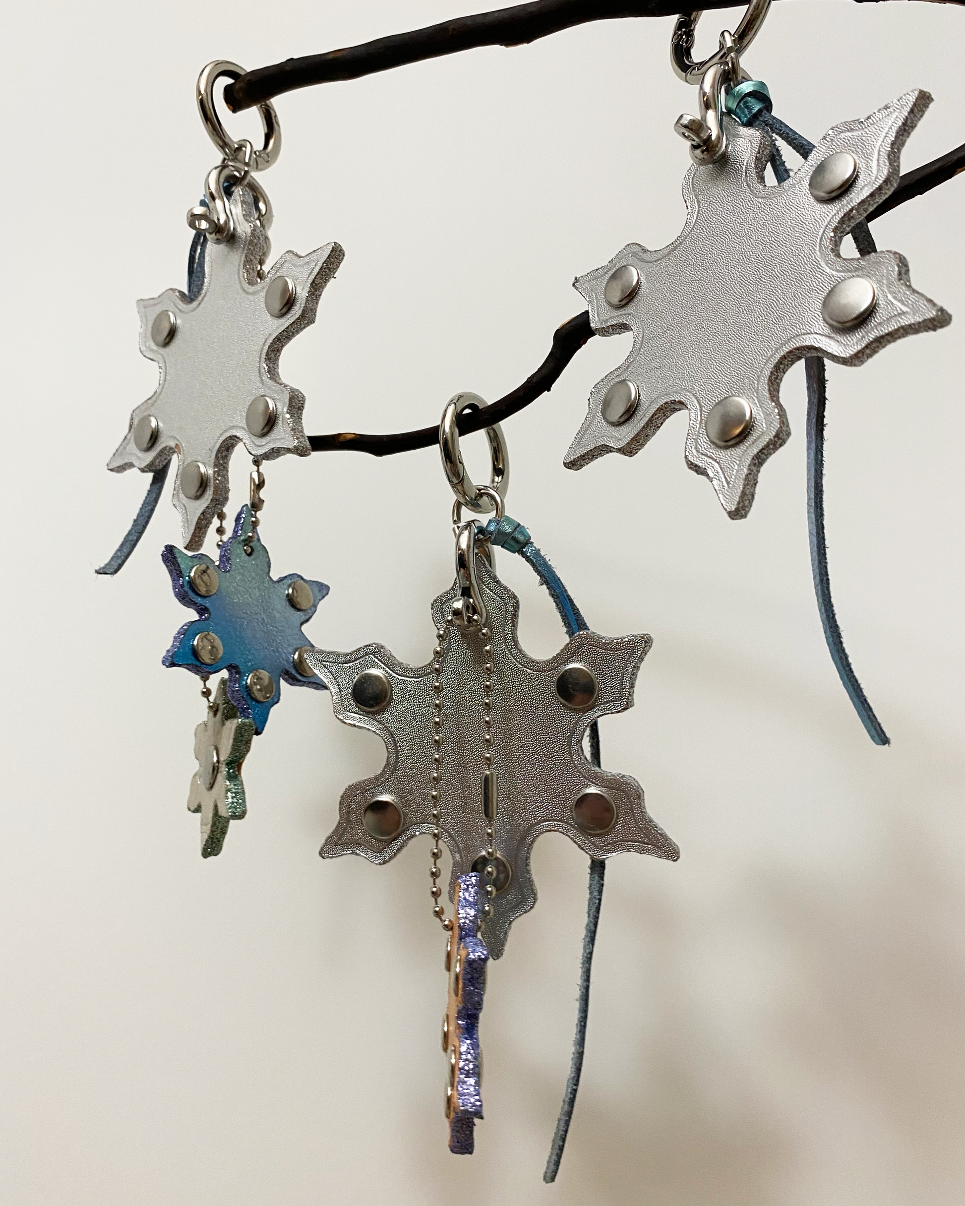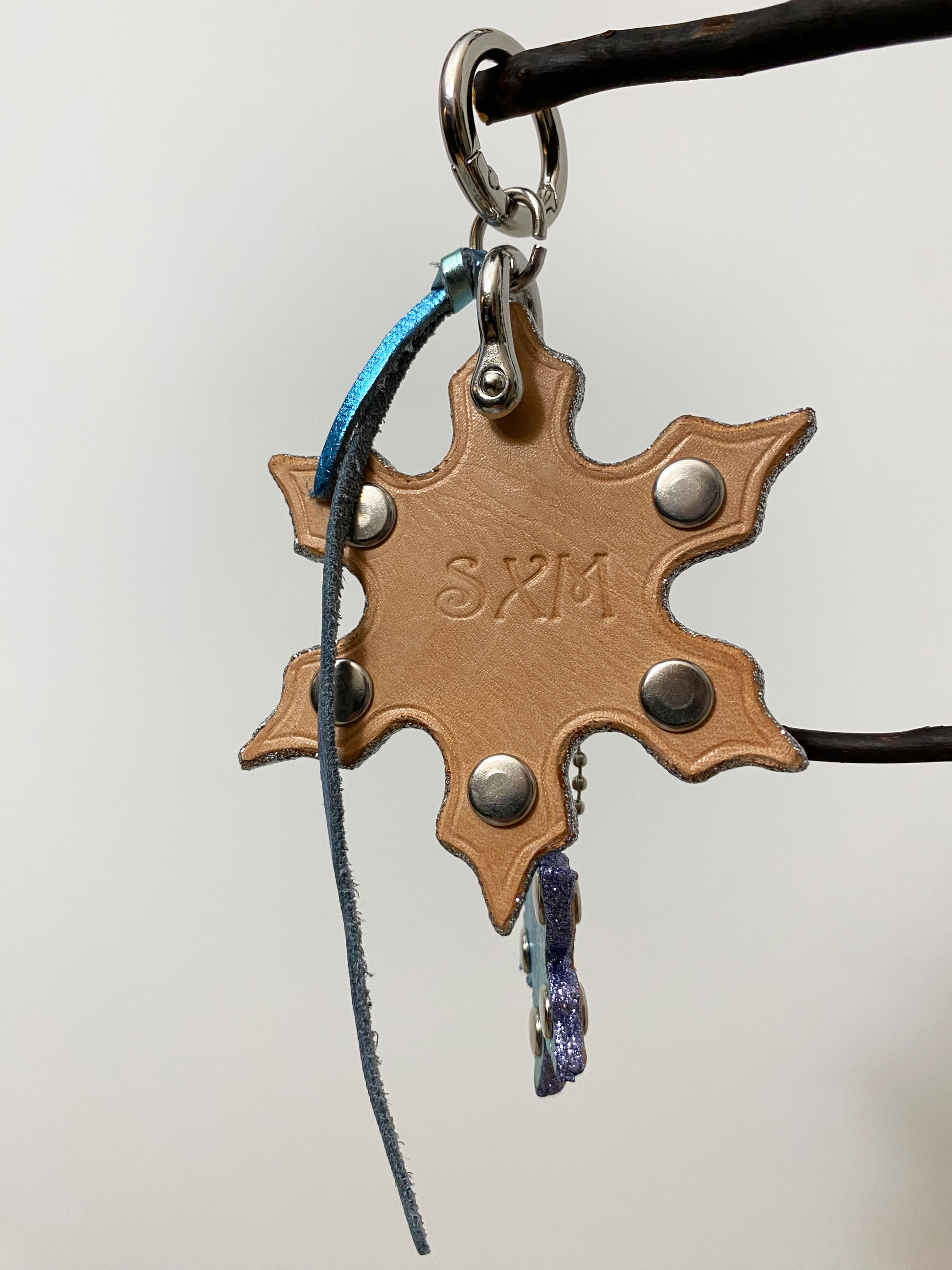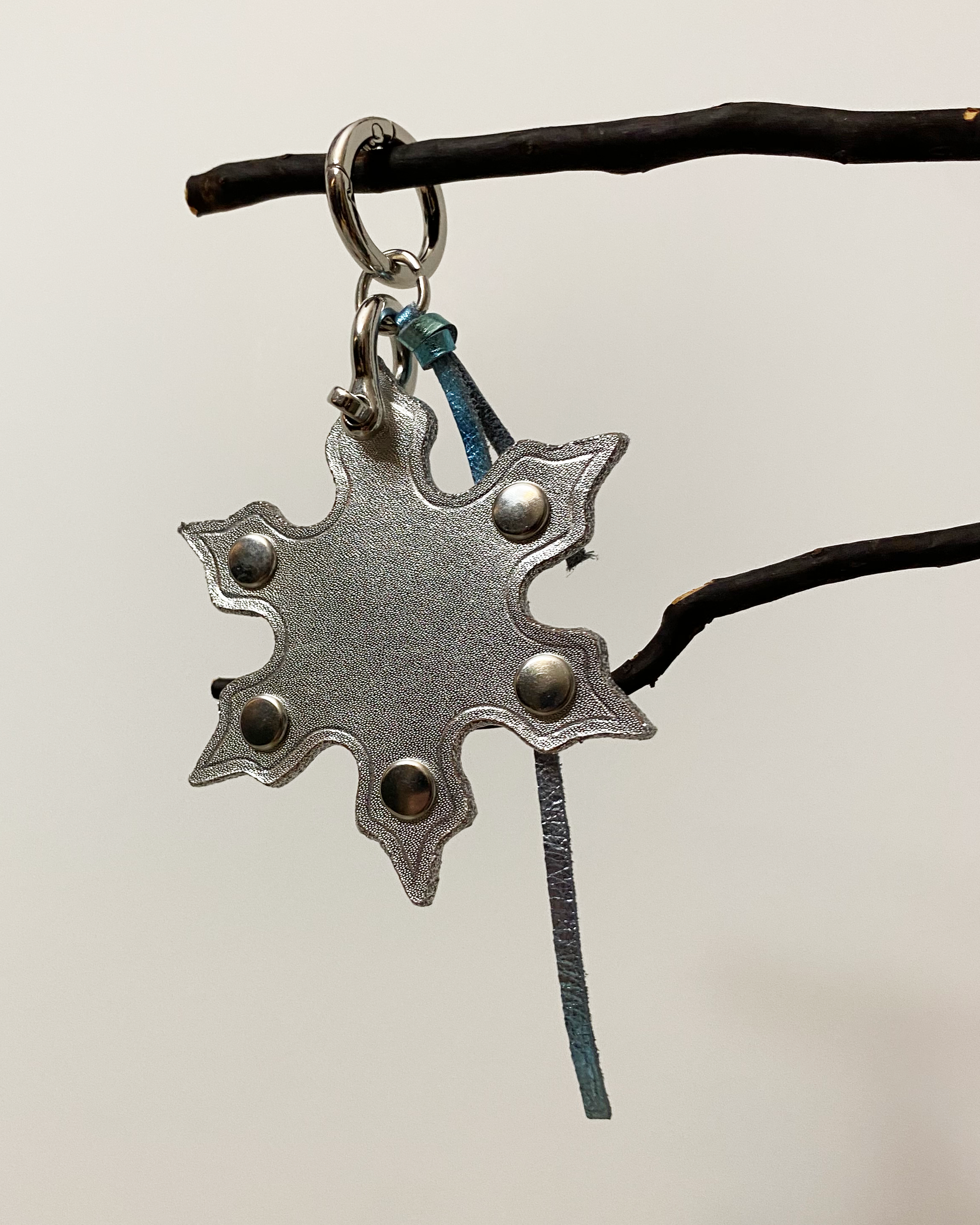 Step into a winter wonderland and experience The Snow Falling Bag Charm! Hand crafted from the finest leathers, adorned with rivets for the extra edge and eye catching beauty.